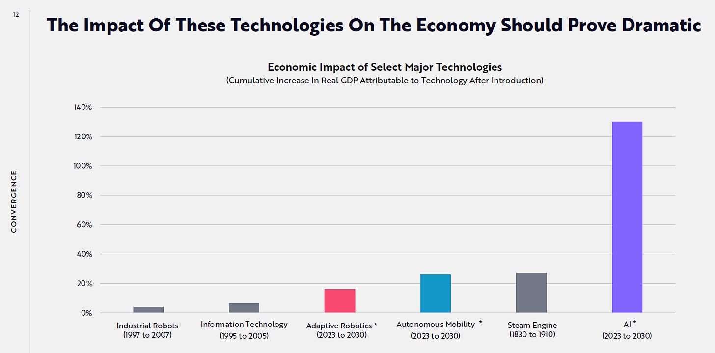 One takeaway here is the the impact of the steam engine was over 80 years. We are talking about the next seven years with disruptive technology.